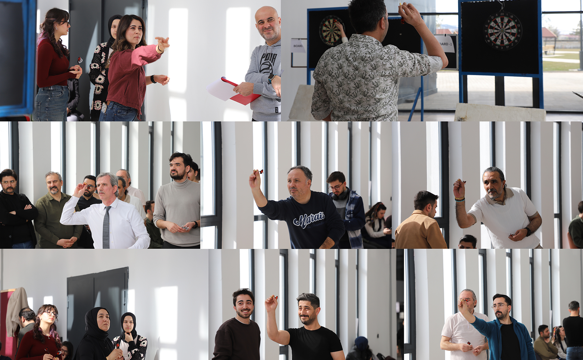 Sivas Bilim ve Teknoloji Üniversitesi’nde Spor ve Etkinlik Topluluğu ile Sağlık, Kültür ve Spor Daire Başkanlığı iş birliğinde düzenlenen dart turnuvası, personel ve öğrencilerin yoğun katılımıyla gerçekleştirildi. Toplam 28 sporcunun mücadele ettiği turnuva, çekişmeli karşılaşmalara sahne oldu.