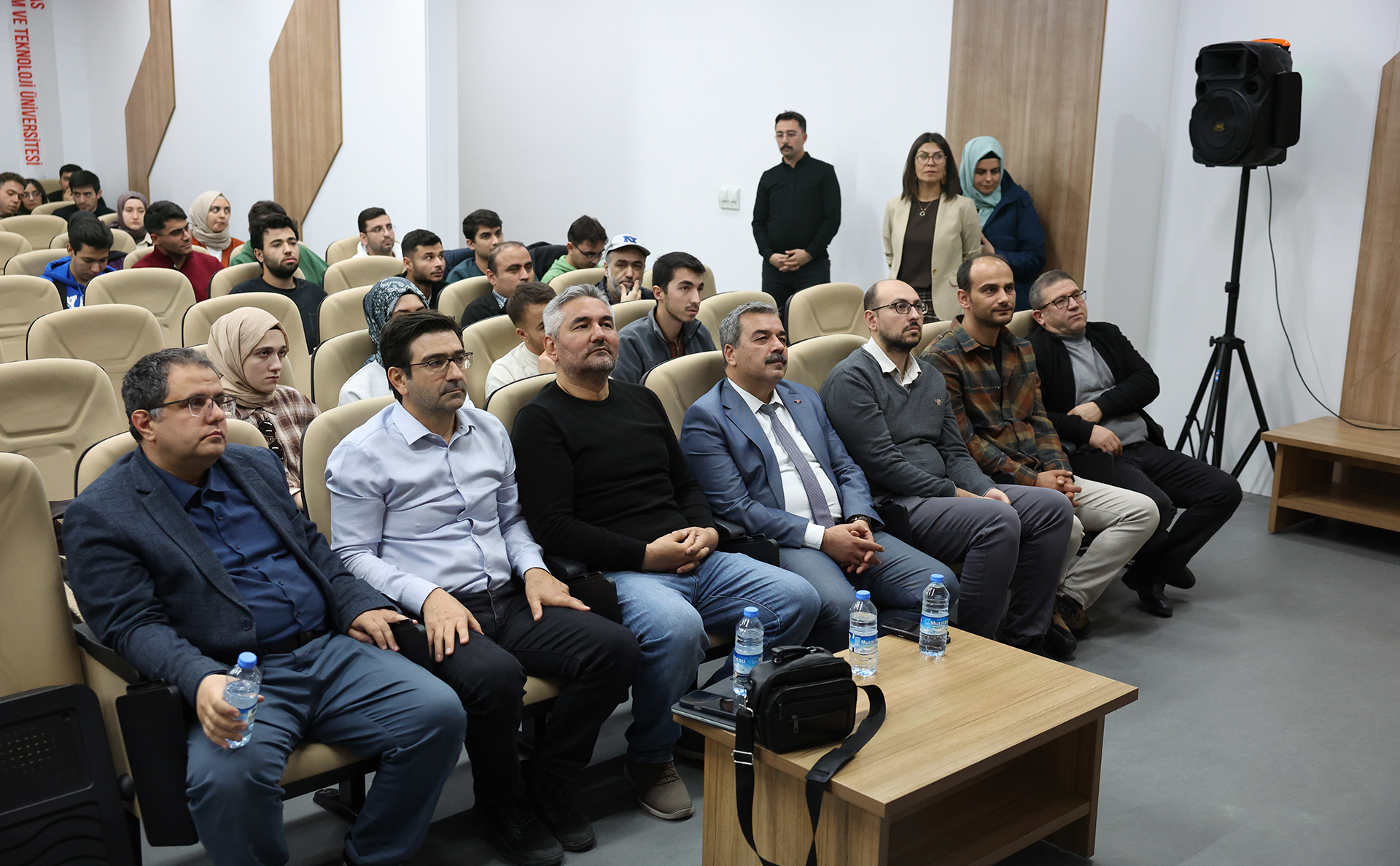 Mühendislik ve Doğa Bilimleri Fakültesi ile Bilim ve Teknoloji Topluluğu iş birliğinde düzenlenen etkinlikte konuşan Osman Keleş, savunma sanayimizin doğal yapısı ve gelişiminin yanı sıra kariyer fırsatları konusunda katılımcıları bilgilendirirken Mustafa Cihangir Akbaba yerli ve milli motor sistemlerinin üretimi ve sektörel zorluklar konusunda öğrenci ve akademisyenlerimizle deneyimlerini paylaştı.
